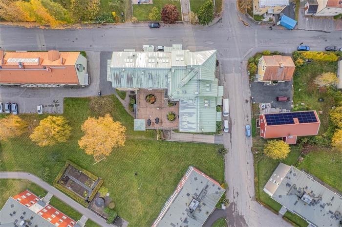 Byggnaden är uppförd med två flyglar som möts i mittendelen där trapphuset finns med hiss och trappor. Entrén är ljus och välkomnande med stenbeläggning och kakel. Byggnaden har totalt 5 våningar med 15 lägenheter, två lokaler samt en tredje lokal som byggts om till 6 st 1 rum och kök. Lägenheterna nås via loftgångar och de två översta planen har etagelägenheter med högt i tak. Byggnaden har ett helt källarvåning som inrymmer tvättstuga med 2 tvättmaskiner 1 tumlare 1 torkskåp och 1 mangel, 27 källarförråd, skyddsrum och varmgarage med ramp.