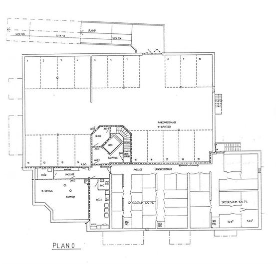 Beskrivning: Grund: betong, Stomme: betong, Fasad: tegel, Takbeklädnad: falsad plåt.