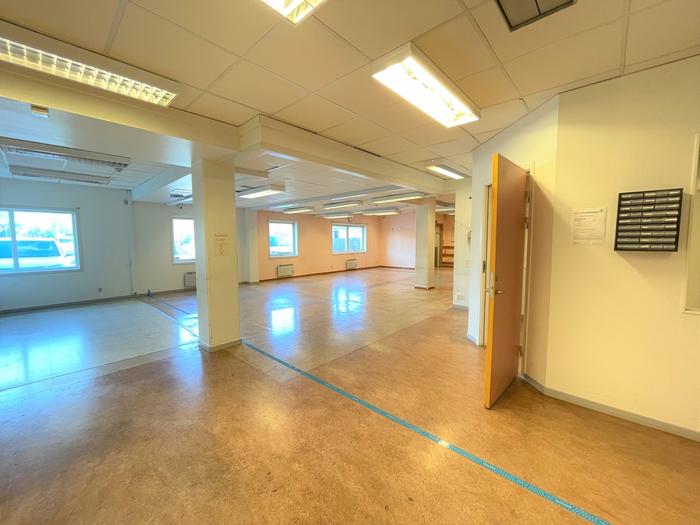 Hyresledigt kontor om ca 309 m samt garage/lageryta i anslutning till lokalen med stor låsbar grind. Inom kontorslokalen finns även ett gammalt bankvalv.