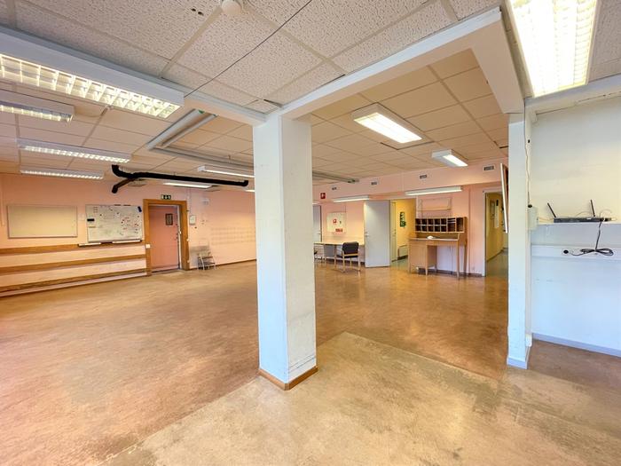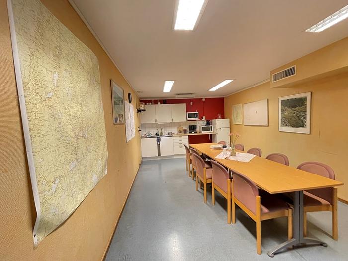 Lokalen har ett större lunchrum, omklädningsrum och dusch.