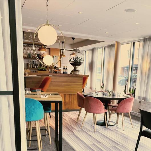 Generös och välplacerad bardel för en levande atmosfär och smidig service.