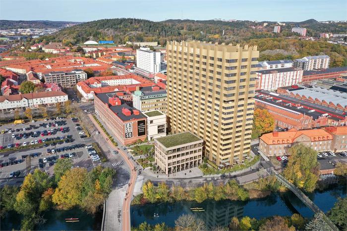 East 1 var från början SKF:s huvudkontor och detta stora hus är idag ett ikoniskt landmärke. Arkitekturen kommunicerar stolthet, hållbarhet och svensk design - både utifrån material och flexibla arbetsytor. Nu pågår arbete med att bygga till ytterligare sex våningar på huset, vilket kommer att förstärka husets karaktär och synlighet. Huset i sig är redan idag ett av stadens högsta och erbjuder utsikt som är något utöver det vanliga-från både kontor och terrasser. Högst upp i huset, på plan 22 planerar vi för en gemensam takterrass med slående vyer över vackra Göteborg och Gamlestaden. Perfekt för en kaffe eller kundevent en solig eftermiddag!
