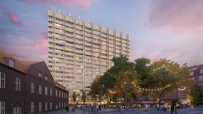 East 1 består av ca 23 000 m² kreativa ytor, plats för möten och nya idéer. Varierande verksamheter och serviceutbud skapar rörelse och flöden i huset under dagens alla timmar. I entrén skapas en känsla av gemenskap, spännande smaker och blir en naturlig plats att mötas mellan kontorsväggarna. Med fokus på hållbarhet och innovation kombineras tidlös arkitektur med moderna lösningar för att skapa en plats som inspirerar till kreativitet och framsteg. Genom att bevara byggnadens ursprungliga själ och använda resurser på ett ansvarsfullt sätt möts tradition och framtid i harmoni - en plats där innovation, historia och gemenskap förenas.