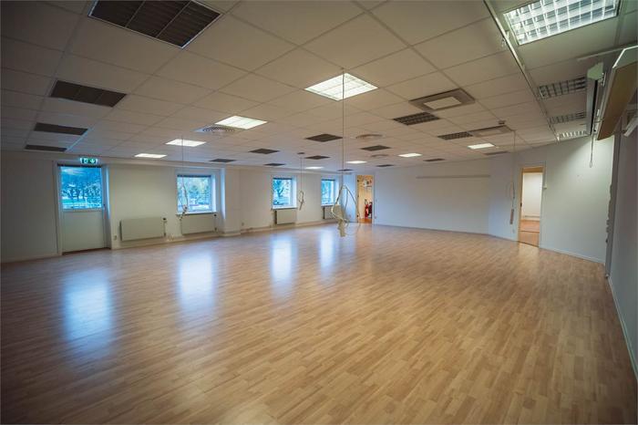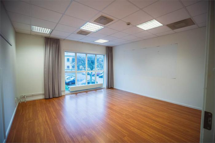 De tre övriga rummen är separata kontorsrum, vilket gör det enkelt att skapa avskilda arbetsplatser eller mötesrum.