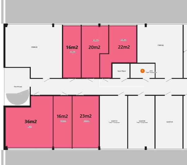 Hyra: 1 300 kr/m²/år. Månadsvis/kvartalsvis