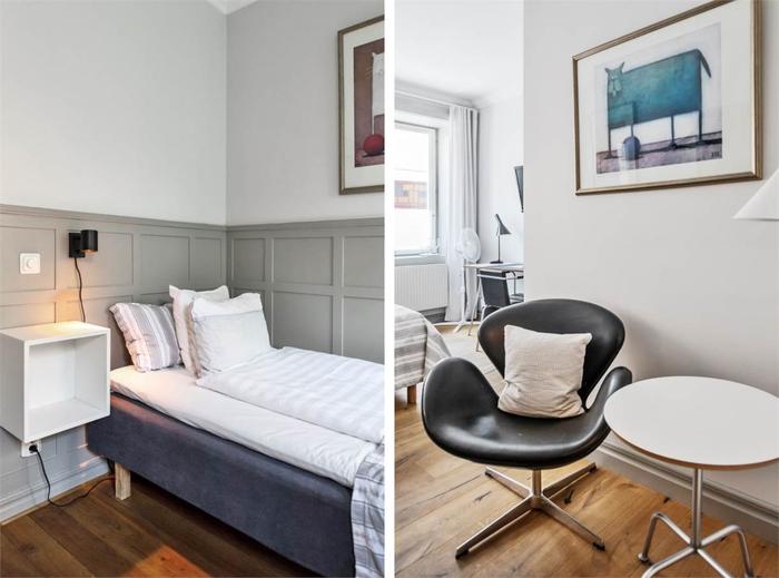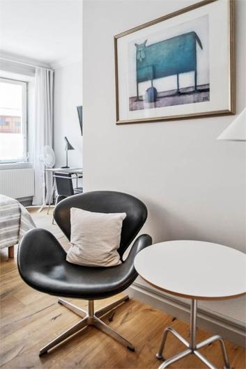 Hotellets inredning är designad av de främsta svenska och danska formgivarna. Gunilla Allards stolar, bord från Lammhult, lampor av Arne Jacobsen och sängar från Dux, skänker såväl atmos-fär som bekvämlighet.