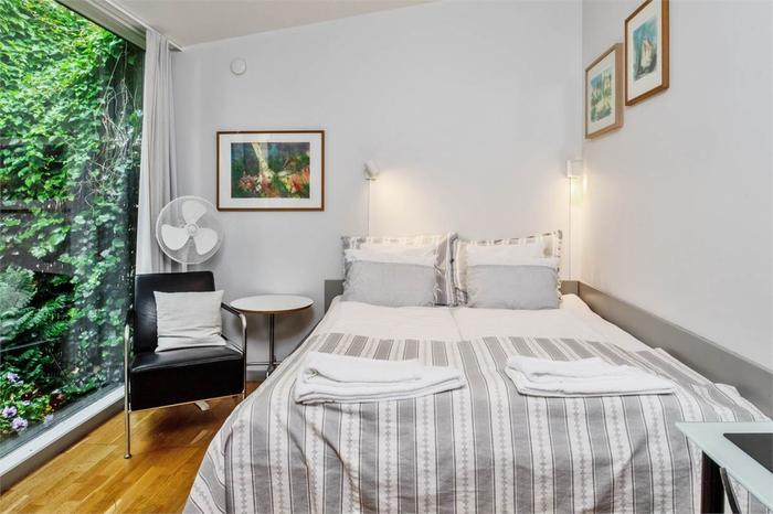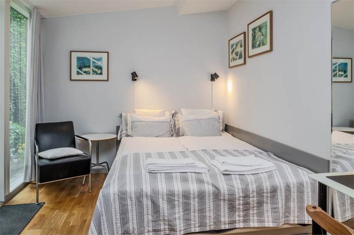 Två av hotellrummen har egen utgång till innergården, som sommartid kan användas som en egen uteplats. Men även övriga rum har tillgång till de sittgrupper som placerats på innergården. Efter en detaljplaneändring 2024 medges nu påbyggnad av ytterligare en våning på den vinkel som 2013 uppfördes på fastighetens gårdsplan. För denna påbyggnad har man alldeles nyligen fått bygglov.
