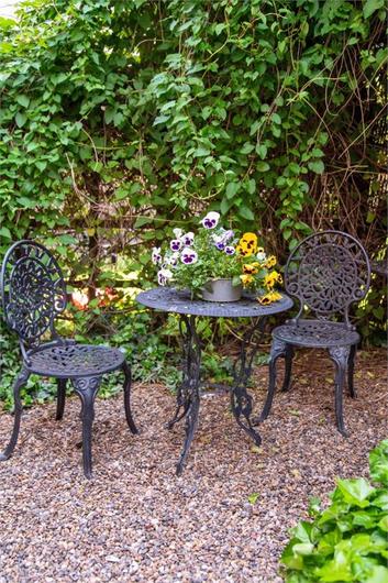 Själva innergården utgör en oas med prunkande växtlighet och sittgrupper som inbjuder till kontemplation och tystnad - mitt i stadens brus.