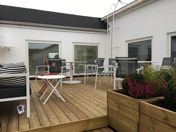 Här finns även dusch, bastu och omklädningsrum samt ett utedäck för lunch och fikastunder.