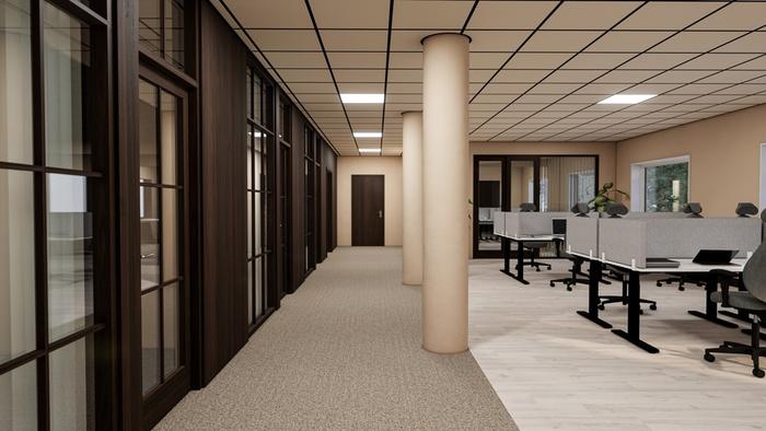I annonsen finns bilder på hur fasigheten ser ut idag men det finns planer på renovering, därav tre exempelbilder på hur kontorslandskapet skulle kunna anpassas för just er verksamhet.