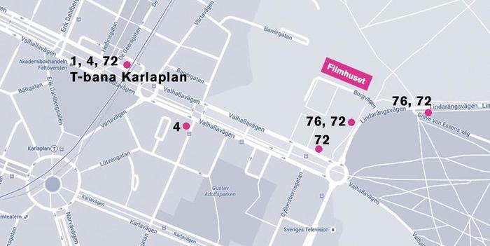 Filmhuset har utmärkta kommunikationer med kort promenadavstånd till tunnelbanan samt flertalet bussar som trafikerar i närområdet, bl.a. linje 72 och 76 med hållplats Filmhuset. Fastigheten nås även enkelt med bil, oavsett vilket sida av Stockholm du kommer ifrån.