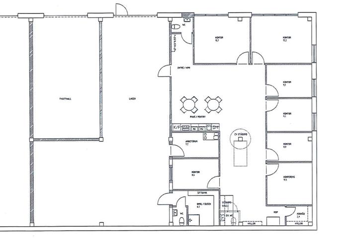 Tack vare den genomtänkta planlösningen passar lokalen för flera olika användningsområden från lagerhållning och lättare produktion till kombinerad kontors- och servicelokal.