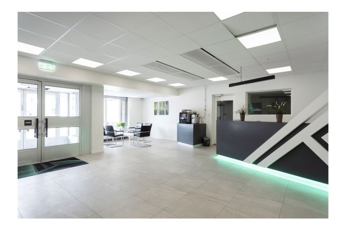 Lagerlokal om ca 5 550 kvm. Representativ kontorsentré med parkeringsplatser intill. Nyrenoverad kontorsdel i mestadels öppen planlösning.