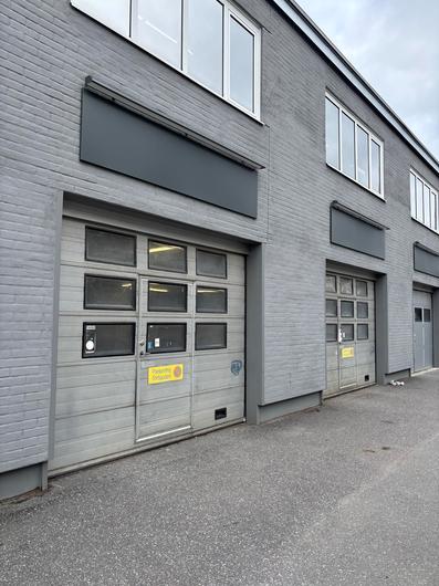 En rymlig lokal som kan vara utmärkt att använda som schowroom, butik eller lager, dock ej fordonsrelaterad verksamhet. Lokalen är hela 597 kvm. Två portar (framsida och baksida) är perfekta för godsmottagning. En extra port (bredvid huvudingång) är direkt ansluten till exponerat utställningsyta. Vänster om huvudingång finns kundmottagning/lounge, och vidare pentry/paus utrymme. Det ljusa golvet och mörkare taket, ger fin bakgrund till röda detaljer, som tillsammans med bra belysningen skapar modernt avtryck. I lokalen finns en toalett och ett duschutrymme. Det finns goda möjligheter för exponering mot gatan. Parkering finns att hyra precis utanför lokalen.På fastigheten finns byggnader för lager och industri samt kontor. Lokalen är lämplig som kontor.