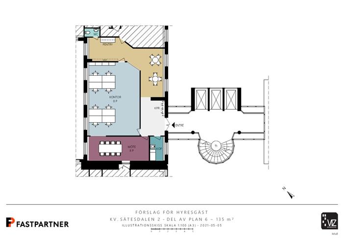 Planlösningen är generellt öppen med ett större kontorslandskap samt konferensrum och samtalsrum.