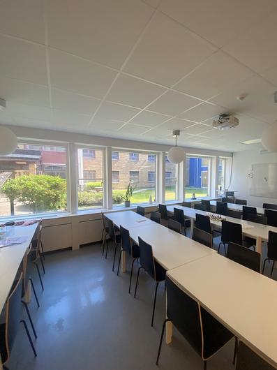 En ljus och trevligt kontor i fönsterläge med en relativ öppen planlösning med några mindre kontorsrum och konferensrum.
