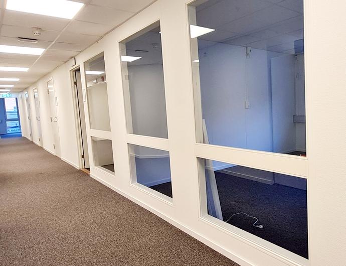 Fin lokal belägen 1 trappa upp. Lokalen består av ett flertal enskilda rum samt större konferensrum. Heltäckande matta på golvet ger ombonad känsla. Ljusa väggar och stora fönster bidrar till en bra arbetsmiljö. Märsta Centrum präglas av en kvarterskänsla med restauranger, café och butiker. Fin utsikt över gångstråk sätter lite mjuk och nostalgiskt avtryck på kontorets karaktär.