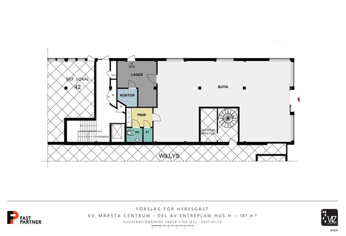 Välkommen till en fin butikslokal i hjärtat av Märsta Centrum. Lokalen är 181 kvm och har ett attraktivt läge med stora skyltfönster som ger god synlighet och fina exponeringsmöjligheter mot förbipasserande. Dina närmaste grannar är bland annat Willys och H&M, vilket bidrar till ett starkt kundflöde i området och skapar goda förutsättningar för din verksamhet. Lokalen lämpar sig utmärkt som butik, showroom eller annan kundinriktad verksamhet, och tack vare placeringen i markplan med egen entré blir den lättillgänglig för både kunder och leveranser. Ett perfekt val för dig som söker en etablerad plats mitt i centrum med närhet till både handel, service och kommunikationer.Fastigheten är belägen intill Willys, med entré ut mot torget i Märsta Centrum. Lokalen har stora skyltfönster som ger god synlighet och exponering mot torget, och tack vare att det är en hörnlokal får du dubbel exponering både mot torget och ett angränsande gångstråk. Det ger en ljus och inbjudande lokal med utmärkta möjligheter att synas från flera håll och dra nytta av det naturliga kundflödet i området.
