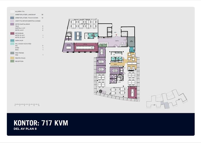 Planen och byggnaden medger olika spännande lösningar. Öppna ytor, där folk står och arbetar kring projektbord bredvid arbetsplatser i öppet landskap. Egna rum eller tysta ytor för koncentration.