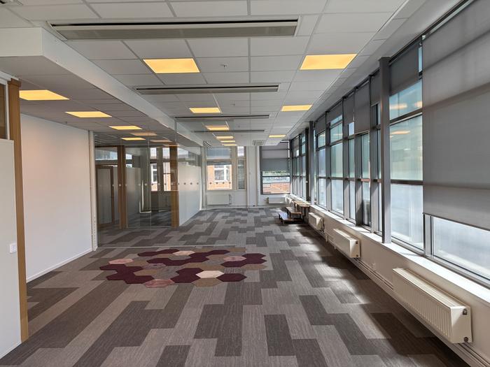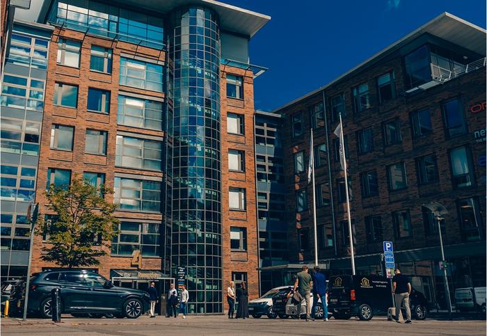 Byggnaden är dessutom hållbar, certifierad enligt BREEAM In Use Very Good, solceller på taket och 100% förnybar energi.
