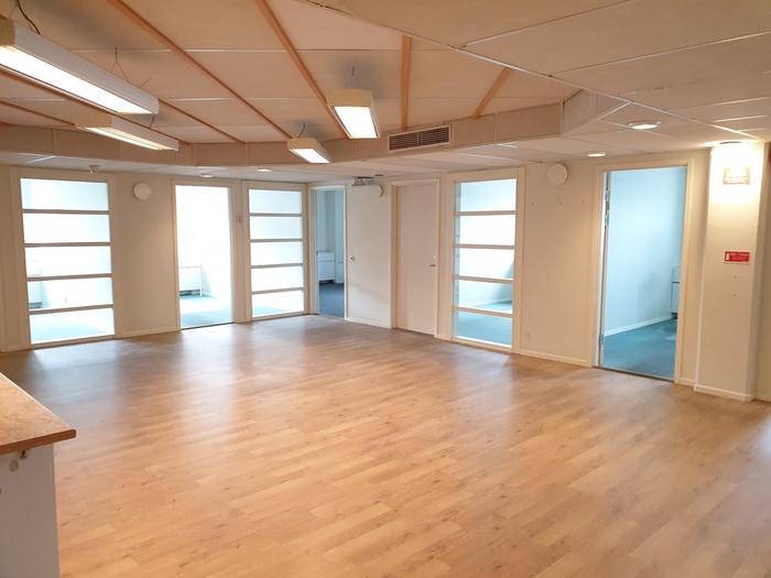 Här kan man välja mellan en blandning av små och stora kontorsrum. Konferensrum, förråd och pentry med tillhörande öppen yta.Funktionell fastighet med god tillgänglighet i markplan.