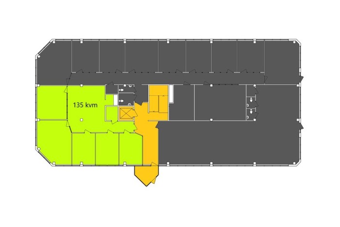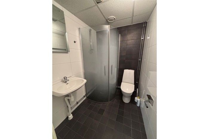 Direkt till vänster om huvudentrén finner vi denna lokal om 135 kvm med en egen reception. Lokalen har separata kontorsrum samt konferensrum som även kan användas som förråd elller mindre lagerdelar. I övrigt finns yta för gemensamma luncher, pentry samt wc med dusch. En lokal som är perfekt för företag i behov av ett fåtal arbetsplatser men plats för gemensamma lunchraster! Till lokalen finns även förråd om ca 20 kvm att hyra till om så önskas.