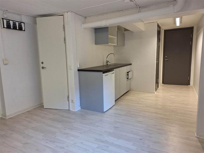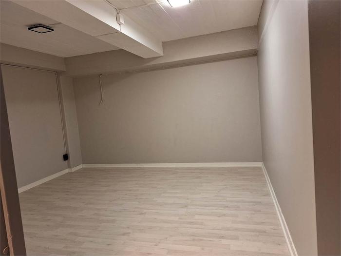 Väggarna är ljusa och på golvet ligger en nylagd parkett