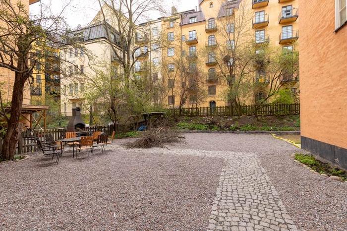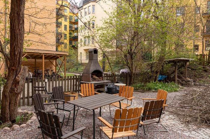 Byggnaden uppfördes år 1926. Det finns en mysig innergård med trädgårdsmöbler och en utomhusspis.