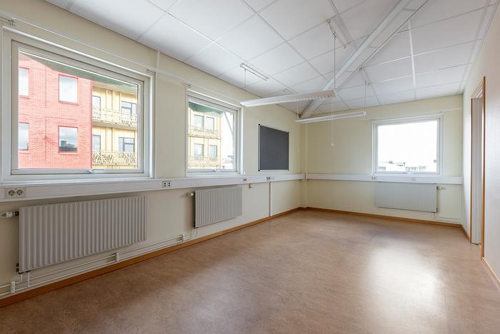 Ljus och generös kontorslokal med centralt läge, rakt över gatan från Kungsmässan i nya Stadsdelen Valand. Lokalen är i ett äldre utförande men fräsch och välhållen. Pperfekt för företag som söker funktionella ytor i bra läge utan krav på toppmodern standard.