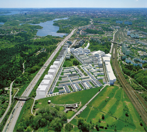 LEVANDE STADSDEL. När allt står klart i Ulriksdal 2026 kommer det att finnas 2 000 bostäder och9 000 arbetsplatser, vilket gör den nya stadsdelen till en levande plats dygnet runt. Nyligen blev det klart att Johnson and Johnson flyttar in i kontorshusen närmast pendeltågsstationen. Bredvid kommer Ess Hotell att driva ett hotell med 200 rum. Dessa både fastigheter kommer att stå klara under 2016.