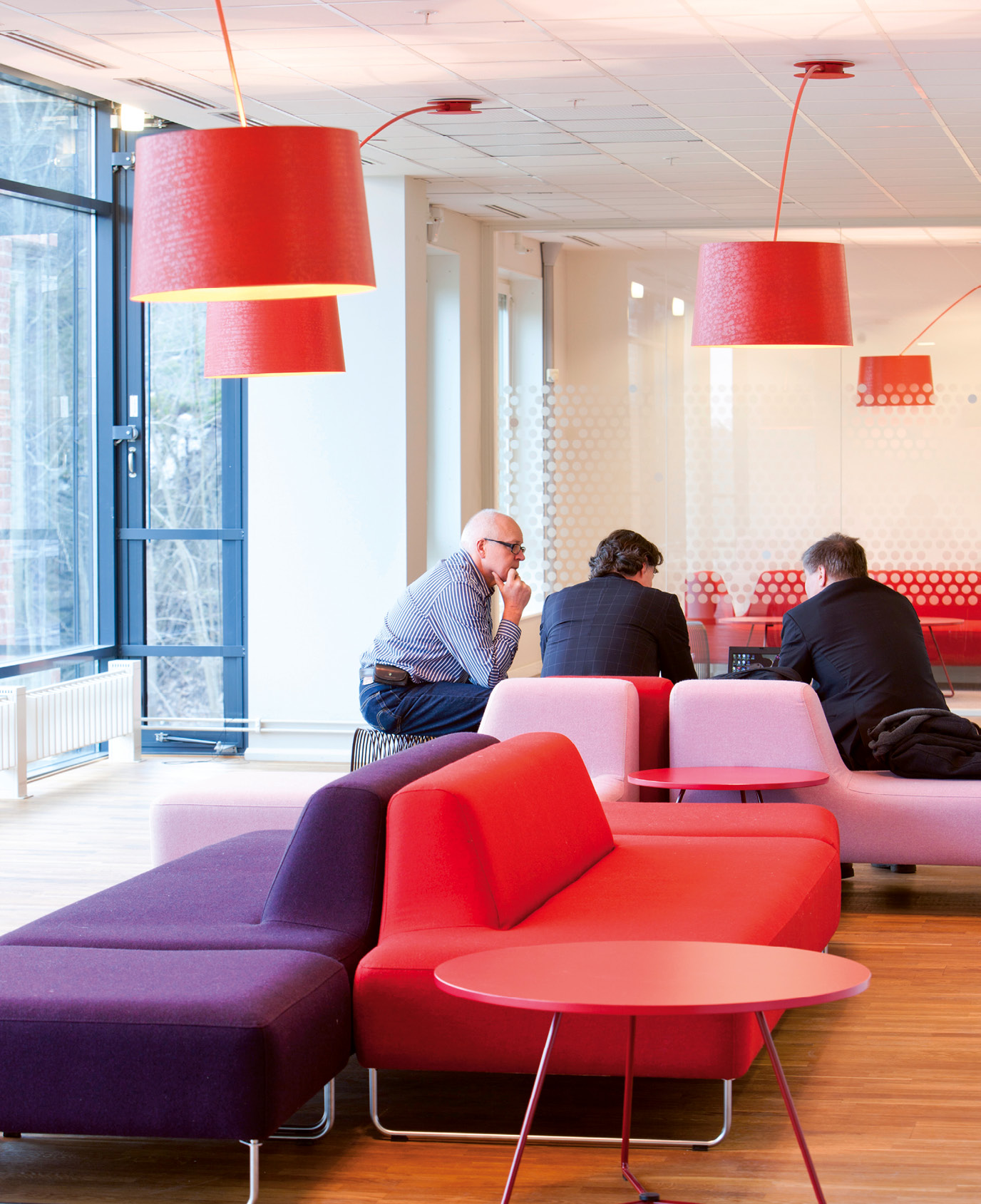 – Vårt kontor är väldigt ljust och varmt. Vi har använt varma färger, med Canonröd som utgångspunkt. Här finns också en lugn känsla. Möblerna har nordisk design och är ljusa. Vi har fått en väldigt positiv respons från våra medarbetare.
