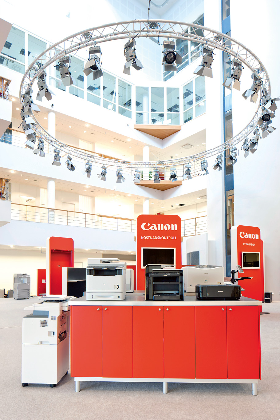 Det som också var viktigt var ytan. Alla 350 medarbetarna skulle få plats och de behövde en utställningsyta på cirka 500 kvadratmeter för att visa upp sina produkter för kunderna. Canon har inte bara kameror utan även copyprinters, projektorer, produktionsskrivare och mjukvaror, som de säljer business to business.