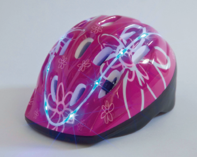Ljusslingan i hjälmen laddas via USB och adapter. Hjälmarna finns för såväl vuxna som för barn och anpassas enkelt till bärarens huvudmått.