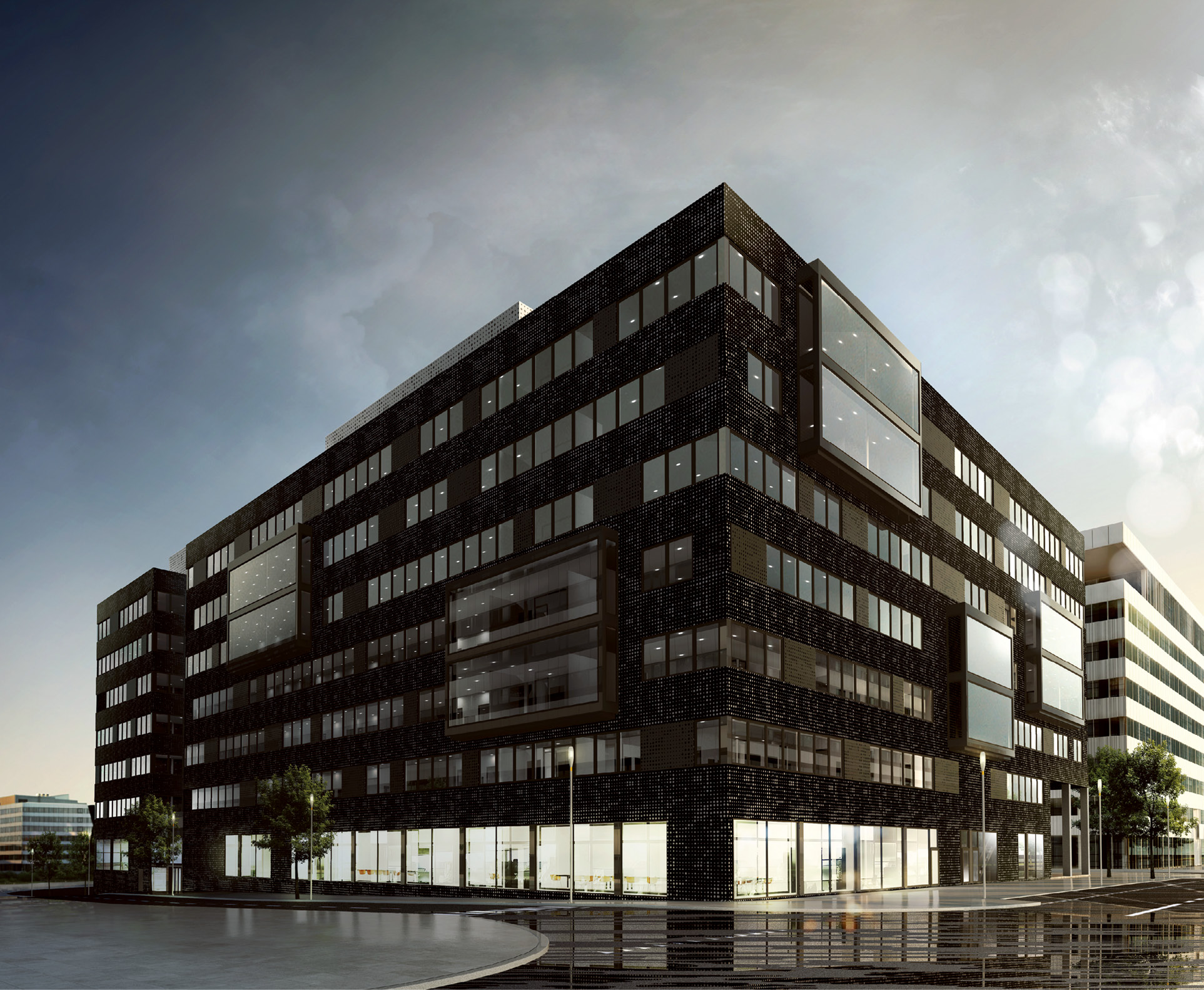 Fastigheten byggs med en prefabricerad betongstomme. Fasaden blir svart och kontoren traditionella och flexibla. Entrén byggs som en öppen ljusgård upp till nionde våningen med balkonger hela vägen upp. Totalt blir fastigheten tio våningar med terrass. I entréplanet blir det också mötes- och konferensrum och utrymme skapas även för en större restaurang på 800 kvadratmeter. Där har Klövern redan nu börjat arbetet med att hitta en lokalhyresgäst till restaurangen.