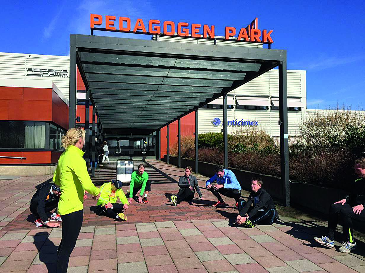 Kristian Höglind, marknads- och försäljningschef på Aspelin Ramm Fastigheter, berättar att det var förra året som man bestämde sig för att starta en löpargrupp bland hyresgästerna i Pedagogen Park. Han kontaktade företaget Hälsa Mera som är löpcoacher och de hjälpte honom att göra ett upplägg med fokus på att träffas och träna tillsammans på ett sätt där alla kan vara med.