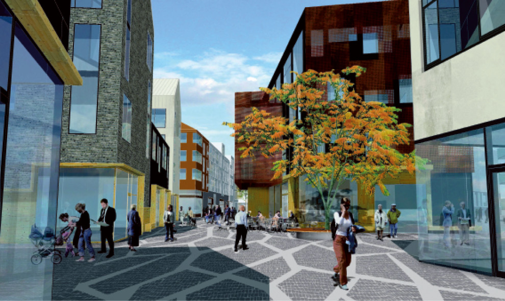 Sammanlagt omfattar projektet sju byggnader med cirka 270 lägenheter – hälften hyresrätter och hälften bostadsrätter – och 12 000–14 000 kvadratmeter kontor, service och butiker, både i bottenplan på bostadshusen och i renodlade kontorshus.