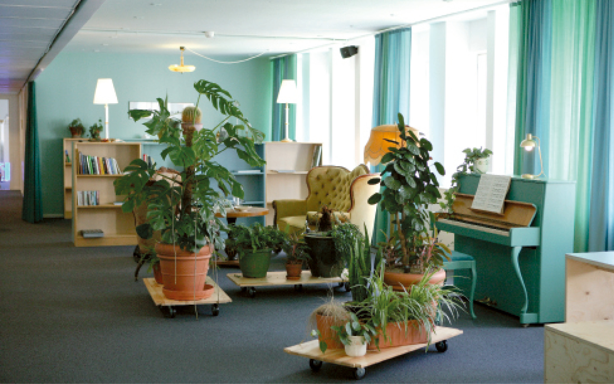 Vi går en rundvandring i de nya lokalerna där fastighetsbolaget har suttit sedan den 3 juni i år. Det är en ombonad känsla som möter en med varma färger, gröna växter, tyger och stämningsskapande lampor. Det finns gott om mötesrum i olika storlekar, alla med sin egen karaktär.