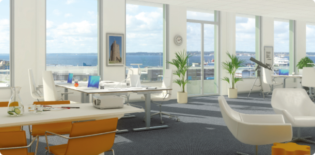 Anpassningsbar. Planlösningen kan anpassas efter de olika företagens skiftande behov, från indelning i cellkontor till öppna landskap och aktivitetsbaserade arbetsplatser.