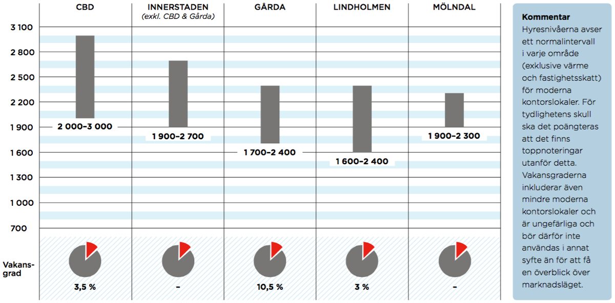– En fortsatt hög efterfrågan och väldigt begränsat utbud av prime-lokaler. Hög efterfrågan på lokaler i storleken 300–500 kvadratmeter och många hyresgäster väljer att flytta utifrån in till mer centrala lägen. Bekymret för hyresgäster som söker lokaler på upp till cirka 500 kvadratmeter är att det låga utbudet innebär att det finns få eller inga alternativ som stämmer in exakt på den storlek de söker vilket försvårar då 30 kvadratmeter större eller mindre gör stor skillnad procentuellt. Många små företag växer och söker kontor från att kanske tidigare ha suttit på kontorshotell eller hemma. Det är också fler och fler traditionella Stockholmsföretag som fått upp ögonen för Göteborg och det är ett tecken på att Göteborg går bra.
