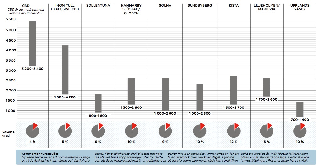 Det är ett stort tryck på lokalhyresmarknaden generellt. Moderna och yteffektiva lokaler i bra kommunikationslägen är det som främst efterfrågas på marknaden. Ny teknik och förändrade arbetssätt har bidragit till en ökad efterfrågan på yteffektiva och flexibla lokaler. Omvänt så är lokaler i ytterområden med svaga kommunikationsförbindelser och svårföränderliga planlösningar det som efterfrågas minst på marknaden.