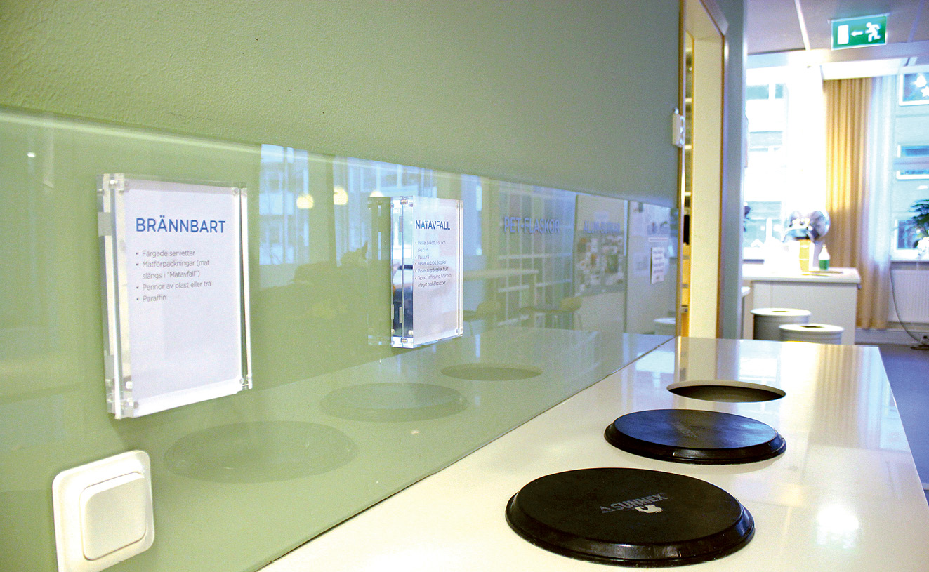 – Alla datorer som tidigare stod på hela tiden försätts nu snabbt i viloläge när de inte används. Vi har även ett KNX-system, som integrerar en fastighets alla elsystem i ett enda system. På det sättet kan allt stängas ner klockan 18.00 och sättas på igen 7.00. Det handlar om belysning, ventilation, värmereglering och så vidare. Det gör att inget står och drar el nattetid, förklarar Sanna Strand.