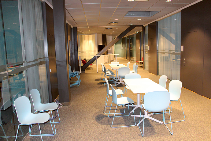 Kontorshotellet i Nod skiljer sig åt från traditionella kontorshotell genom sina öppna ytor som inbjuder till möten.