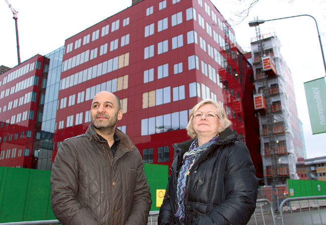 Fabege äger i stort sett alla kommersiella fastigheter i Arenastaden. Cirka 200 000 kvadratmeter lokaler står redan klara i dag och nu byggs ytterligare cirka 150 000 kvadratmeter. Bland annat kontorshuset Uarda 7 som syns bakom Ali Ranji och Lena Holmström på Fabege.