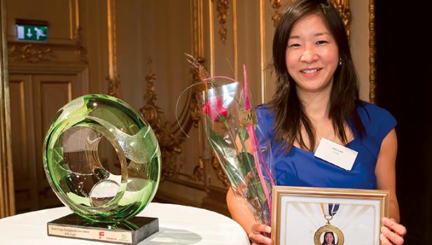 ÖVERLYCKLIG. Julie Lam, Peab, fick stående ovationer när hon utsågs till Årets unga fastighetskvinna.