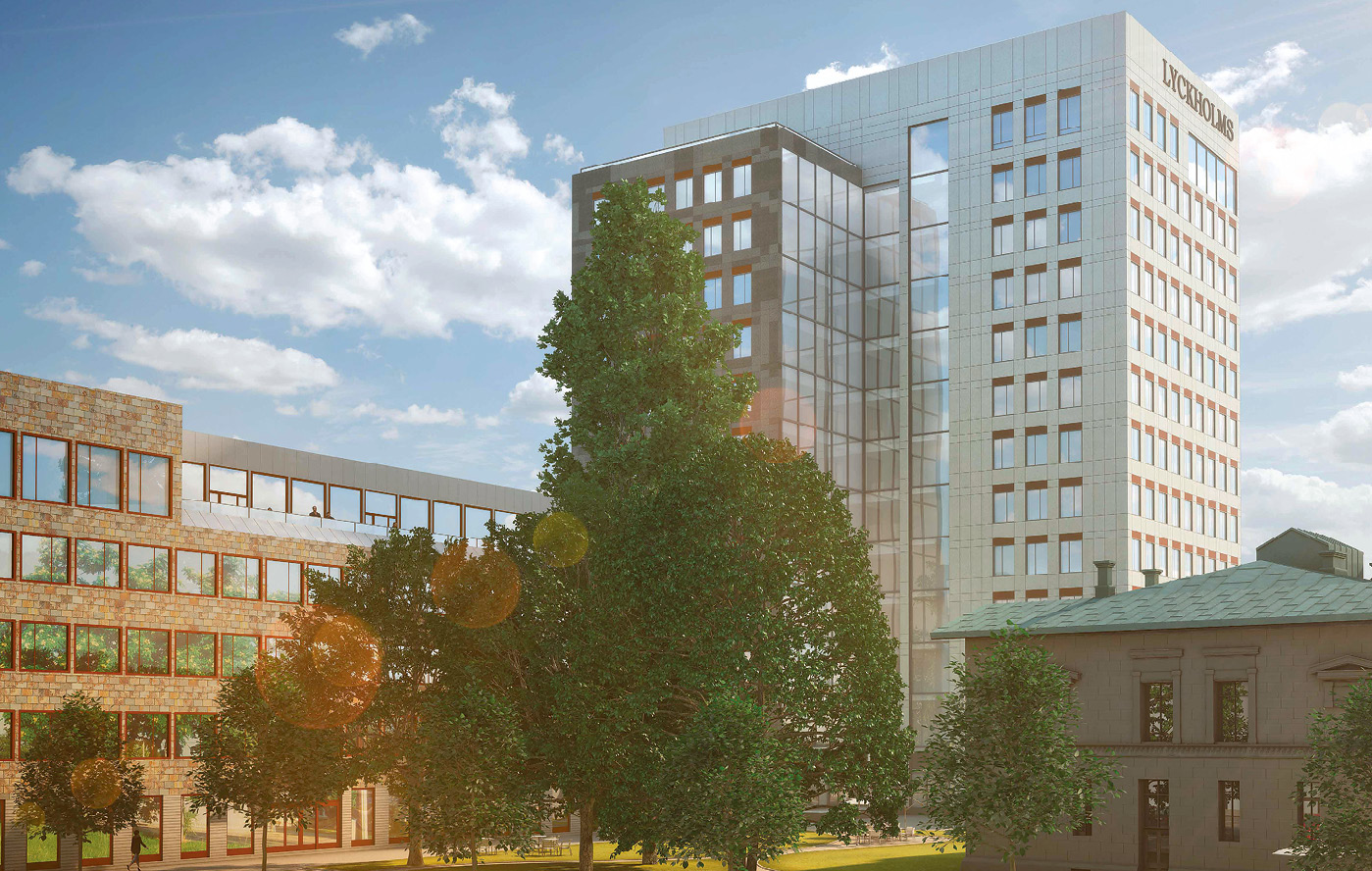 I somras blev det också klart att serviceföretaget Sodexo kommer att ha hand om receptionen, som blir gemensam för alla hyresgäster, lunchrestaurangen med plats för 200 matgäster och konferensverksamheten som kommer att bedrivas i den fantastiska gamla disponentvillan på den öppna planen mellan det gamla och det nya Lyckholms.