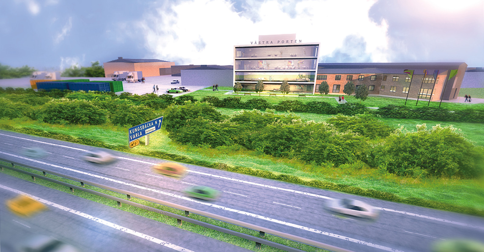 Skyltläge. Nya Västra Porten får ett bra skyltläge ut mot motorvägen.