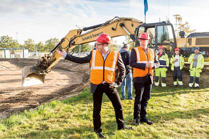 29 september togs det första spadtaget för Väla Park som kommer att rymma 11 000 kvadratmeter lokalyta. På bilden syns byggnadsnämndens ordförande, Magnus Jälminger (M) och Niklas Blonér, centrumchef för Väla Centrum.