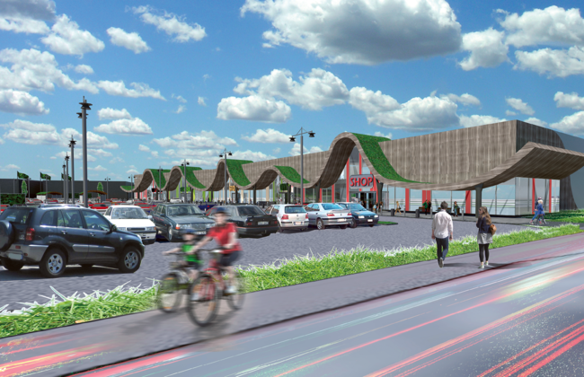 – Med arkitekturen vill vi visa att vi gör skillnad mot traditionella volymhandelsbyggnader. Miljön har stått i fokus med träpanel på fasaden och sedumtak. Träpanelen är värmebehandlad för hållbarhetens skull. Arkitekturen håller mycket hög klass; stora glaspartier med delvis semitransparens förhindrar oönskad solinstrålning, vilket minskar kylbehovet. Grönska kommer att täcka delar av fasaden. Energieffektiv belysning (LED), ventilation och uppvärmning blir standard, liksom extra isolering i tak och väggar. Det blir gröna tak, stora grönytor och grön parkering. Det ligger i allas intresse att värna om miljön, säger Jenny Nilsson.