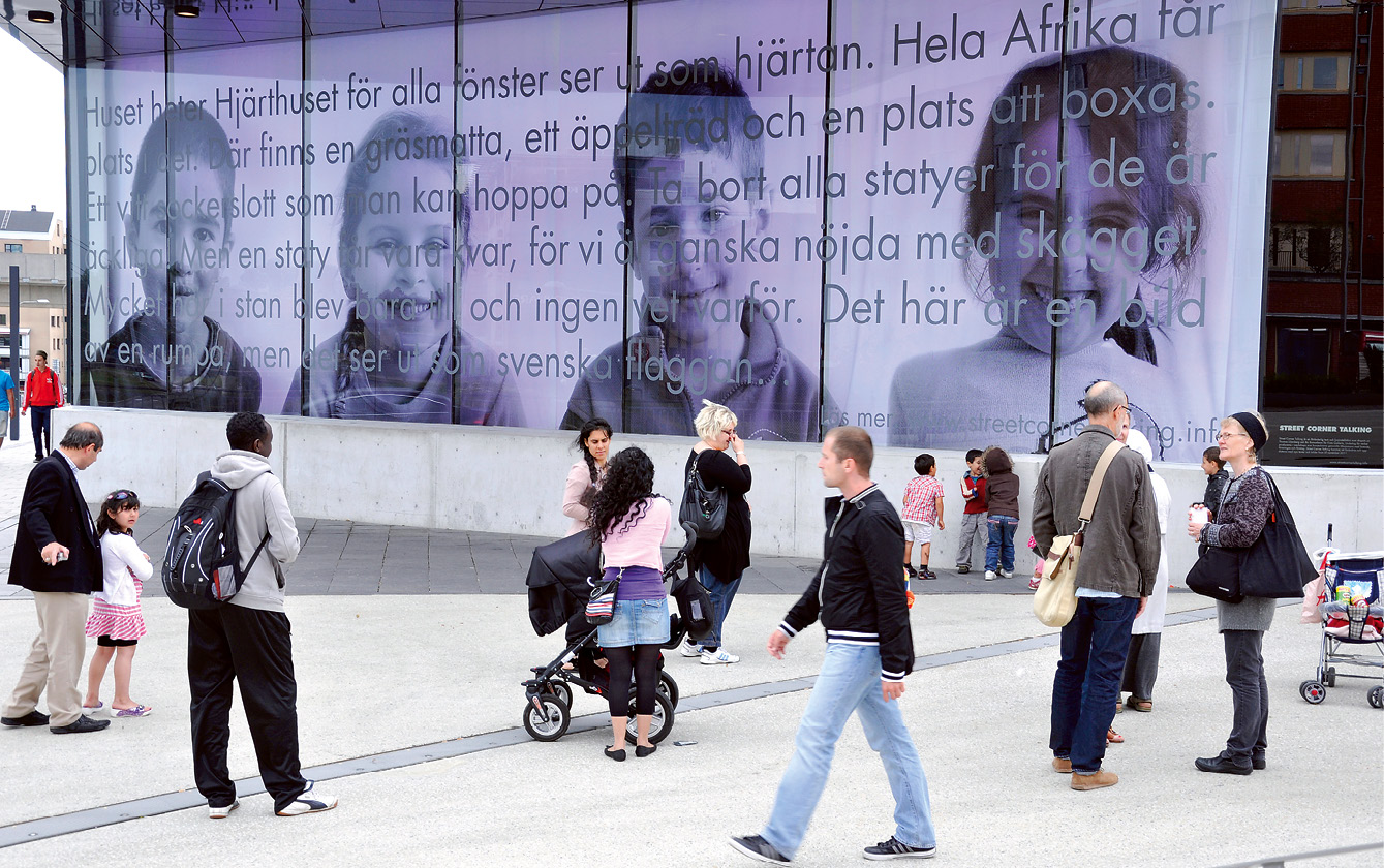 Gatprat. Street Corner Talking är en glasvägg i Kista Gallerias fasad mot Jan Stenbecks torg på 16 x 5 meter. Den fylls av resultat från workshops i form av texter, bilder och ljuskonst.
