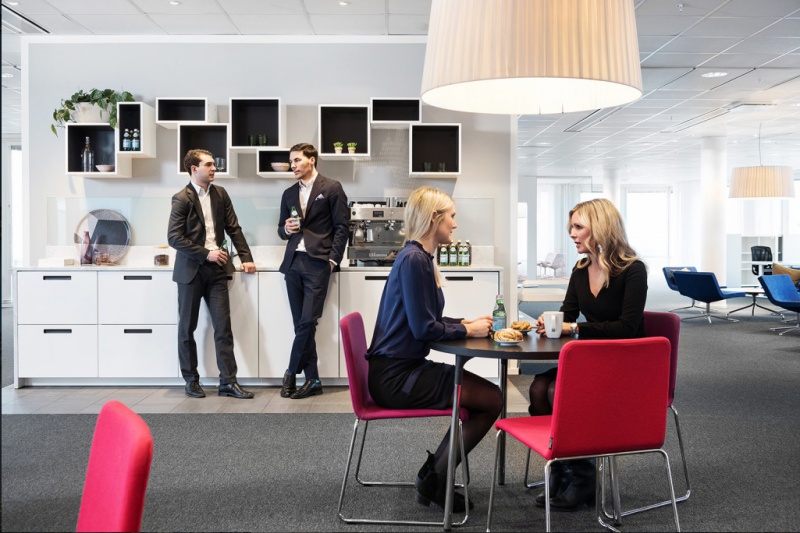 Flera av kontoren i HagaBlue har stora uteplatser eller terrasser i direkt anslutning. Här kan personalen umgås, äta lunch, ta en kaffe eller träffa sina kunder.